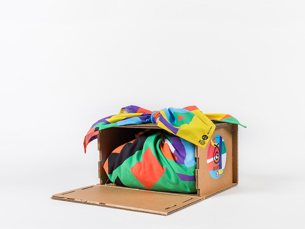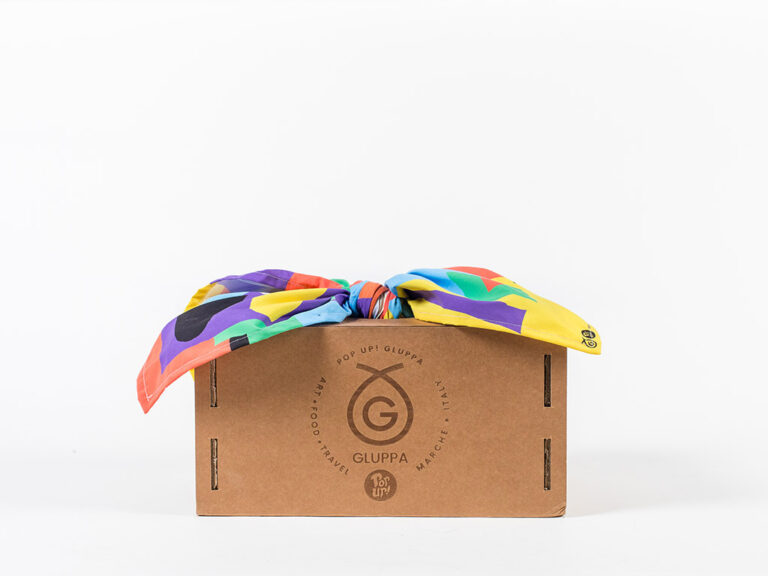 There Gluppa di Mare is a food box that contains an artist's fabric and a selection of products from the maritime tradition of the Marches.