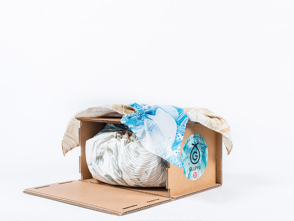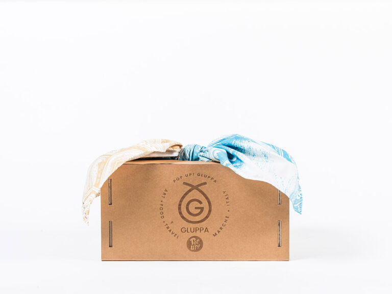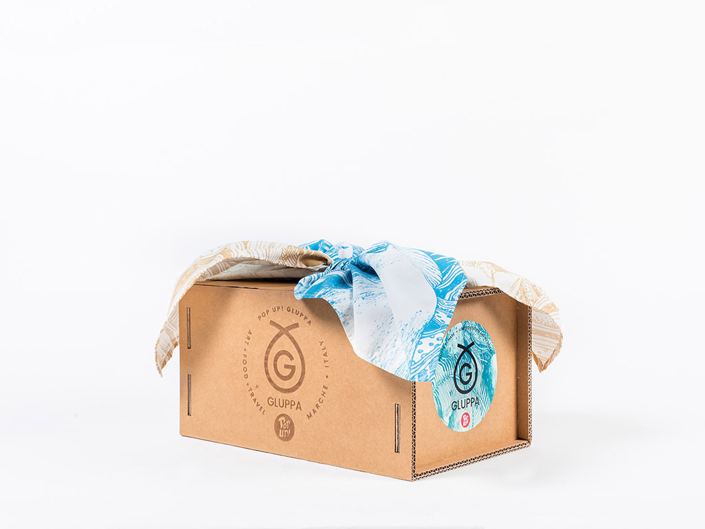 La Gluppa di Mare è una food box che racchiude al suo interno un tessuto d’artista e una selezione di prodotti della tradizione marinara marchigiana.